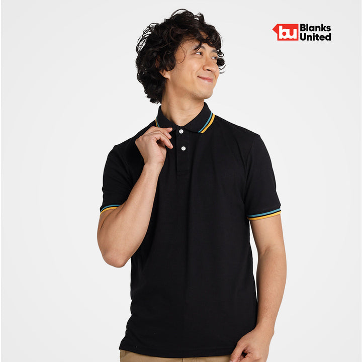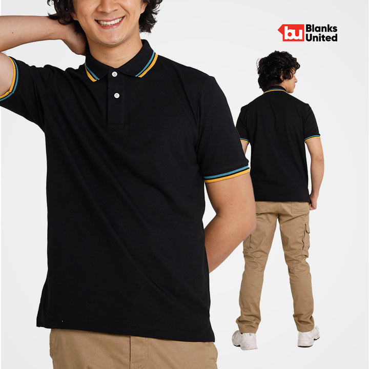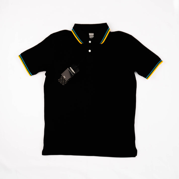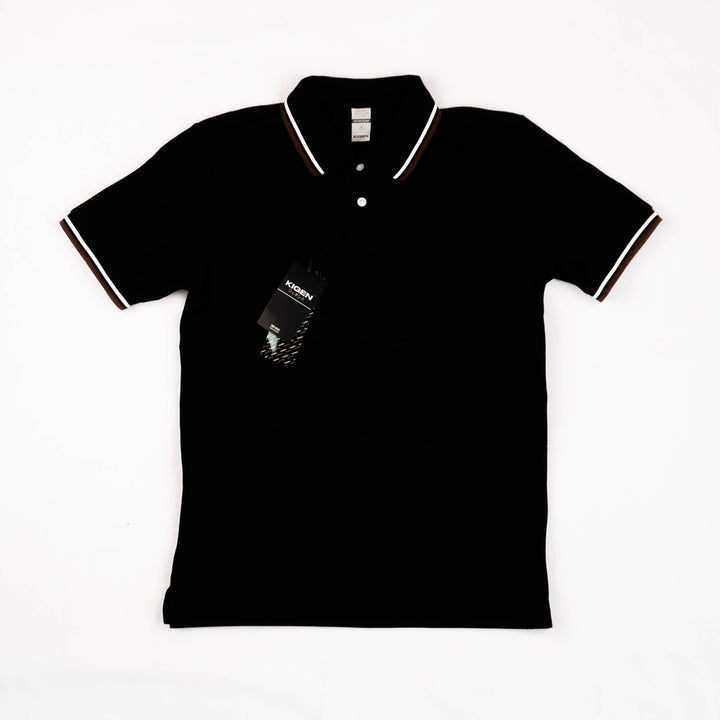 KIGEN #9900 Unisex Tipped Pique Polo Shirt BLACK (XS-3XL)