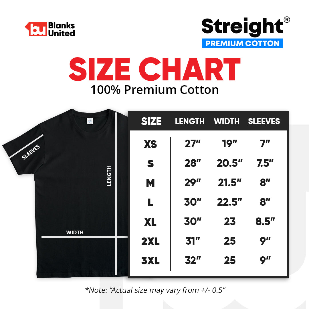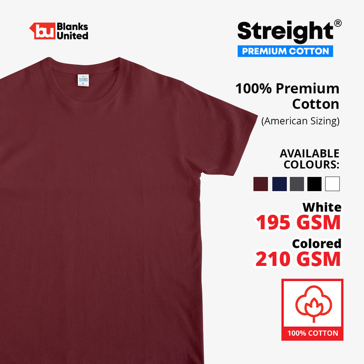 STREIGHT Premium 100% Cotton Blank T-Shirt - Unisex (XS - 3XL)
